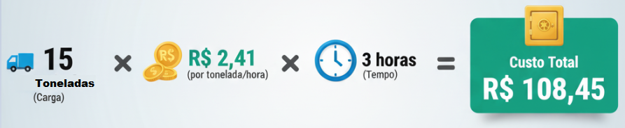 O cálculo considera a capacidade total do veículo, independentemente da carga efetivamente transportada. Por exemplo, para um caminhão com capacidade para 15 toneladas que ficou 8 horas para descarga, descontando-se as 5 horas permitidas, a estadia incide sobre 3 horas: